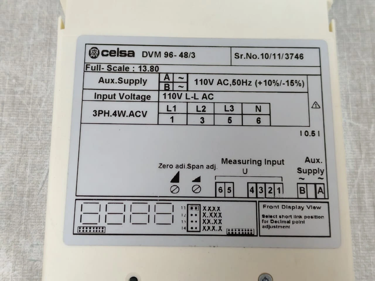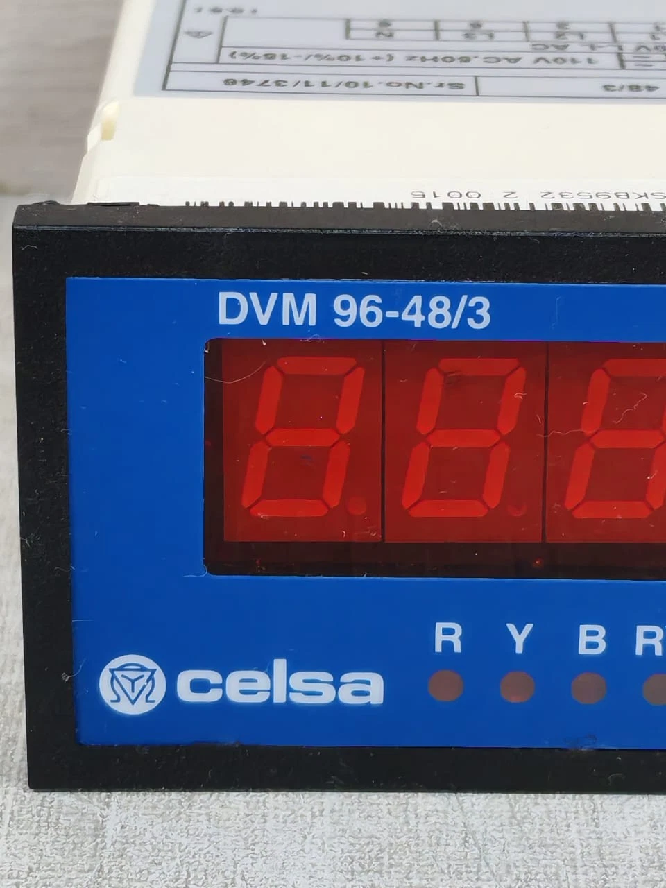 CELSA DVM 96-48/3 DIGITAL PANEL METERS 110VAC – NEW W/ FILTHY BOX