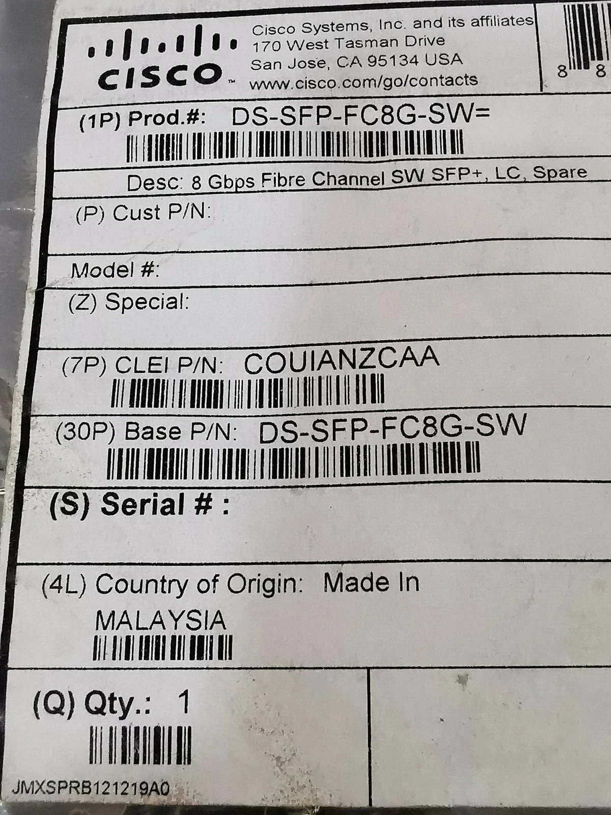 CISCO DS-SFP-FC8G-SW Channel Transceiver/ New – Open box