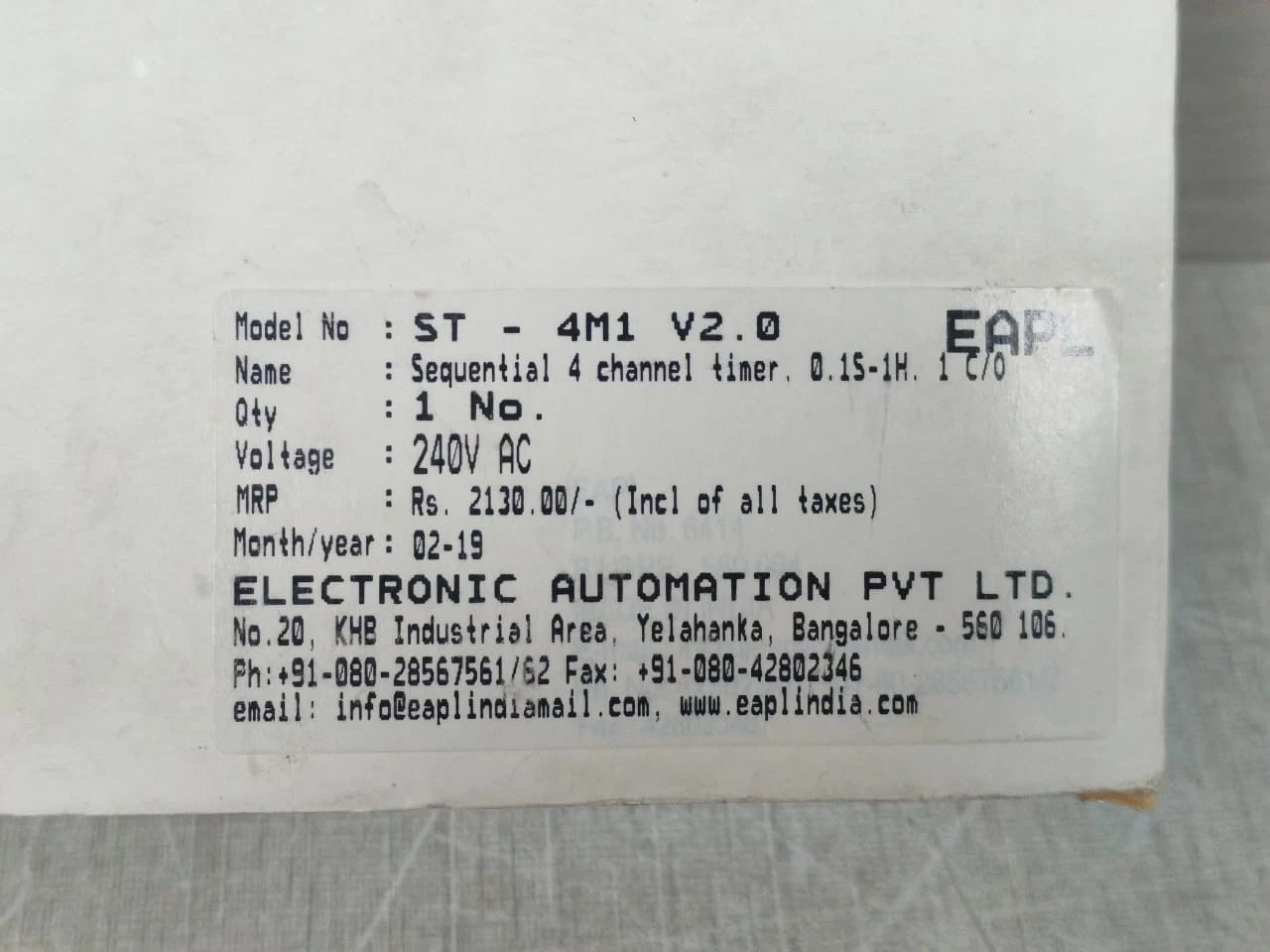 EAPL ST-4M1 V2.0 SEQUENTIAL TIMER 240V- NEW W/ FILTHY BOX