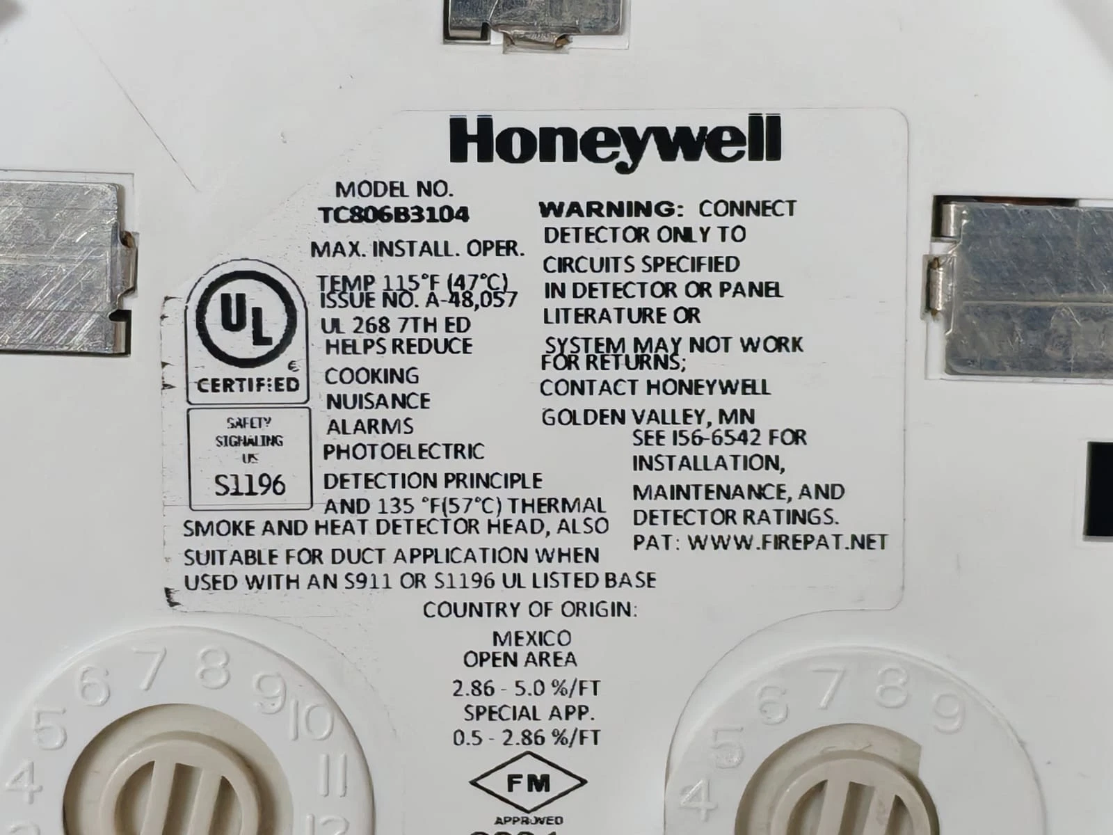 HONEYWELL TC806B3104 Heat Detector / NEW OPEN BOX