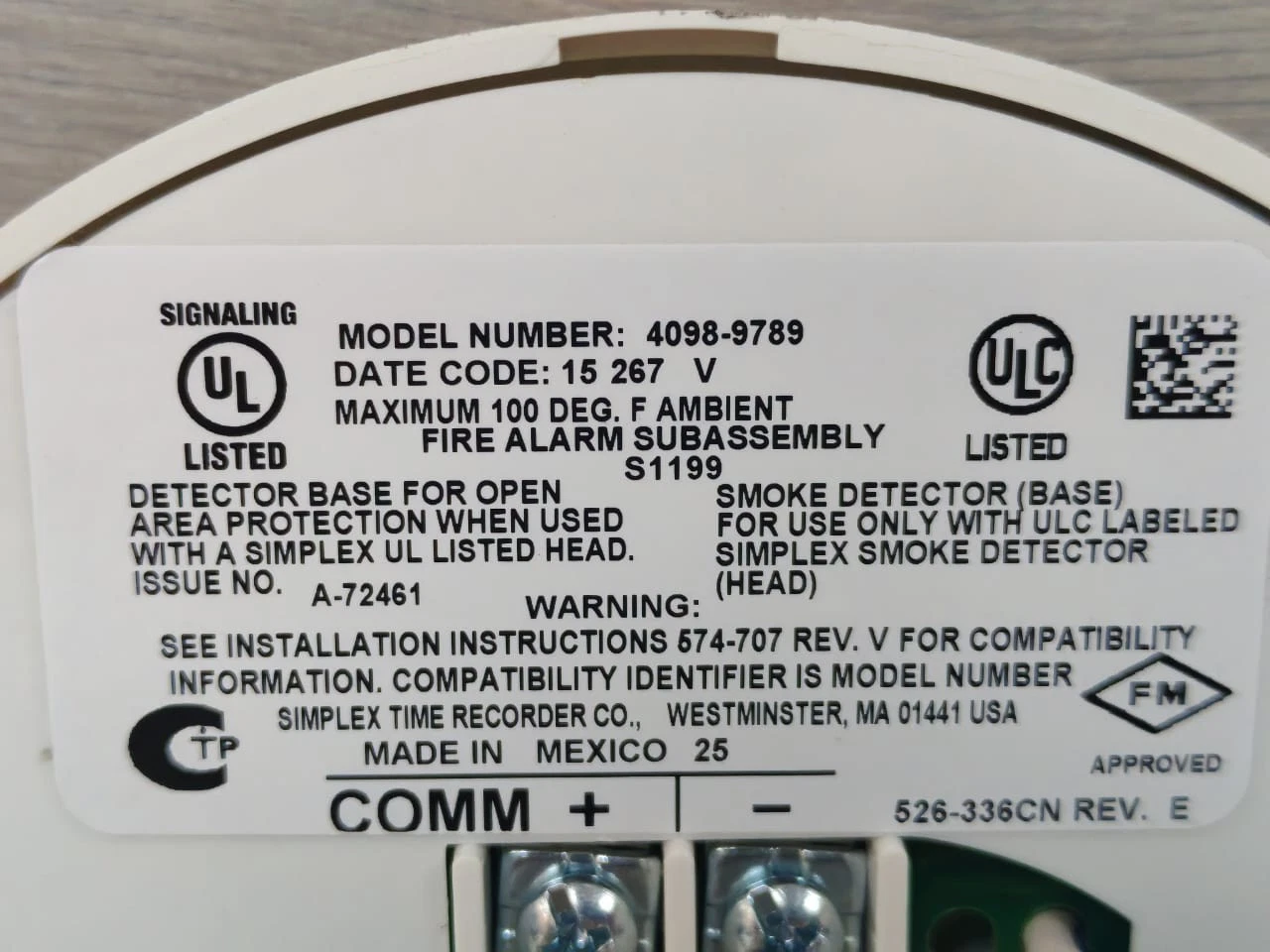 SIMPLEX 4098-9789 LIFE ALARM SENS BASE W/ LED OUT 0677110CN – NO BOX