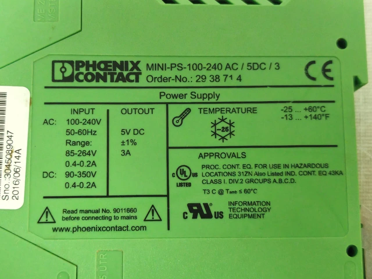 Phoenix Contact MINI-PS-100-240AC/5DC/3 Power Supply 2938714 / SELLER REFURBISHED