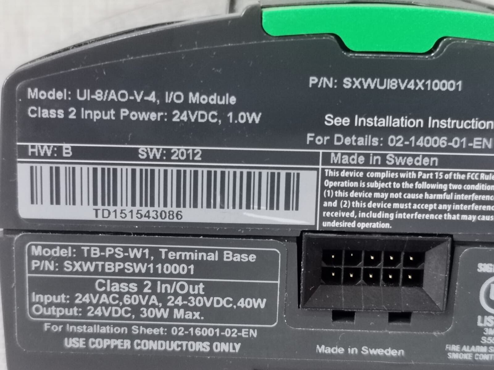 SCHNEIDER UI-8/AO-V-4 SXWUI8V4X10001 W/ TB-PS-W1 TERMINAL BASE SXWTBPSW110001 – NEW WITHOUT BOX