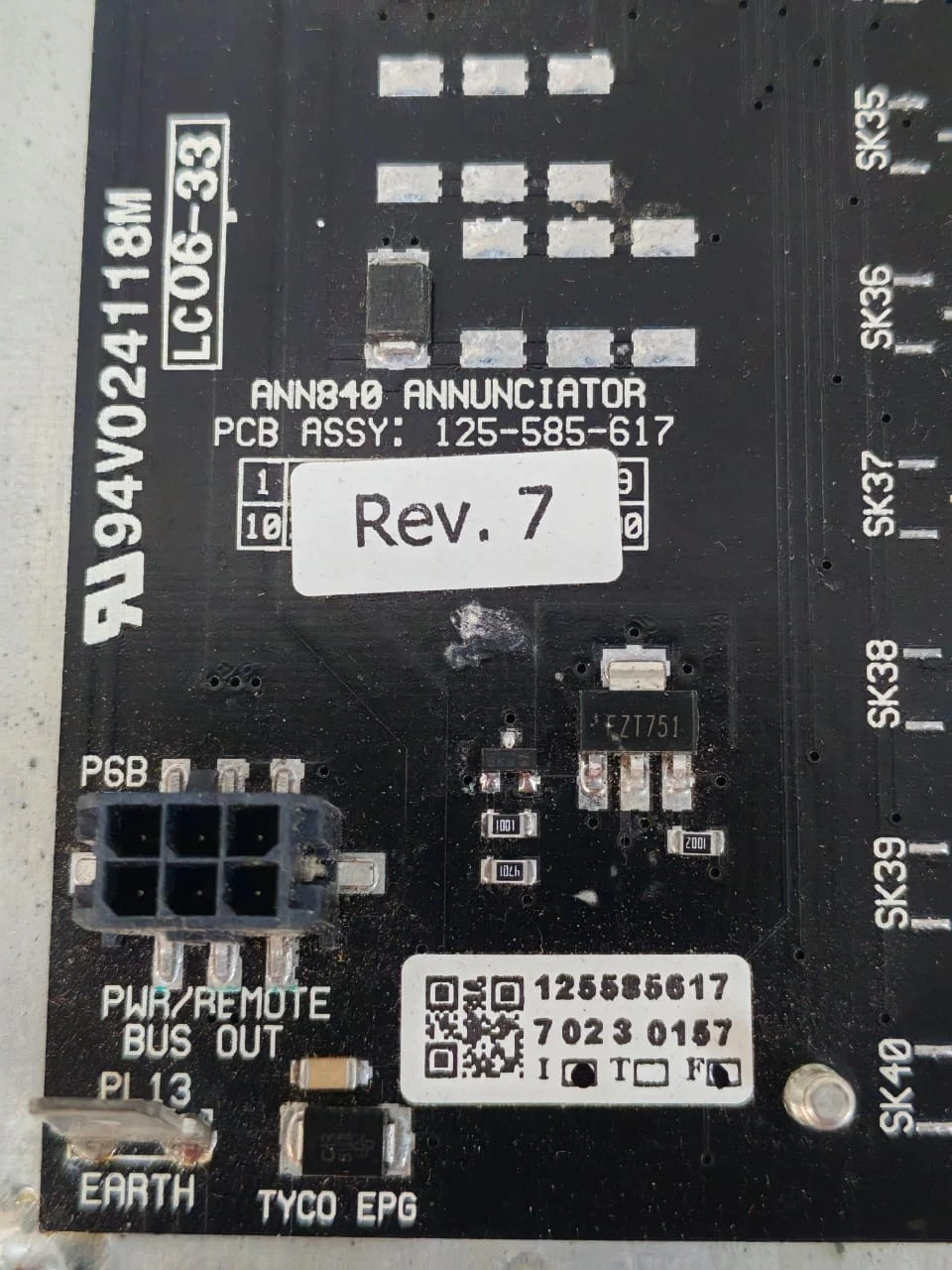 TYCO ANN40 ANNUNCIATOR PCB ASSY 125-585-617 REV.7 / LCO6-33 / SELLER REFURBISHED