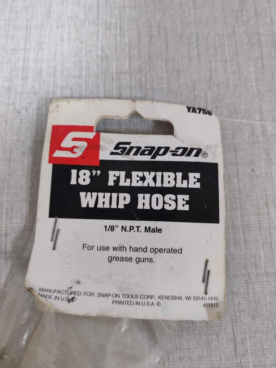 SNAP-ON 18″ FLEXIBLE WHIP HOSE 1/8″ N.P.T. MALE / NEW OPEN BOX