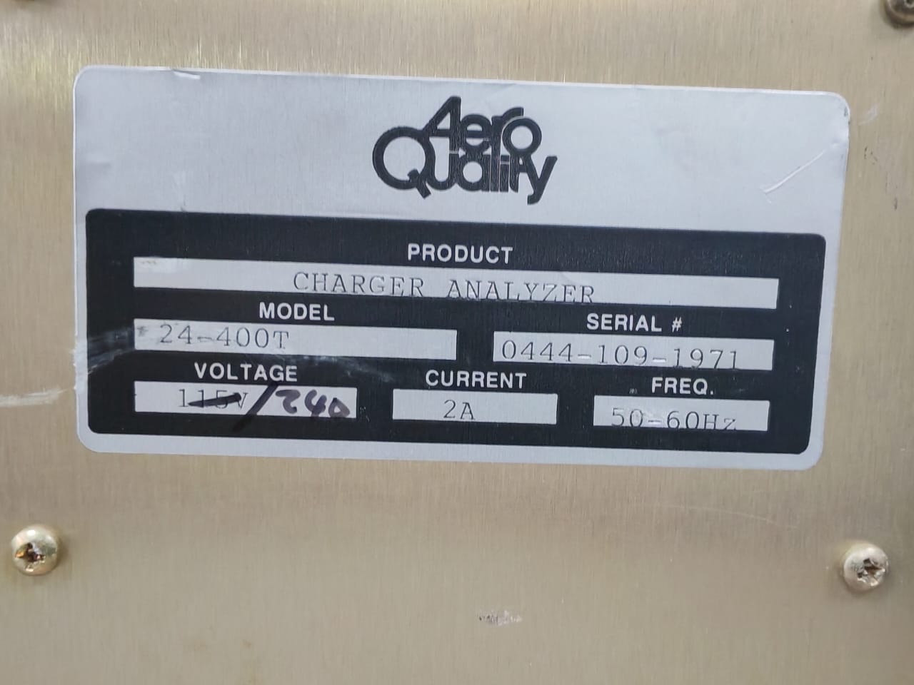 USED AERO QUALITY 24-400T BATTERY CHARGER ANALYZER 240V 2A 50-60Hz