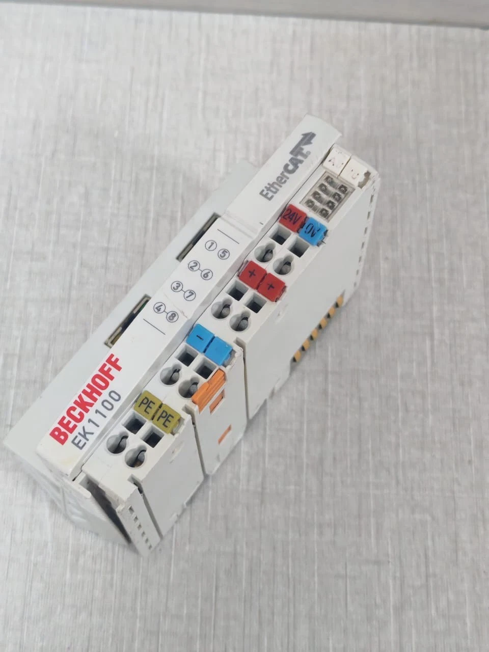 USED BECKHOFF EK1100 ETHERCAT COUPLER INTERFACE MODULE 24V- W/ DAMAGED PART