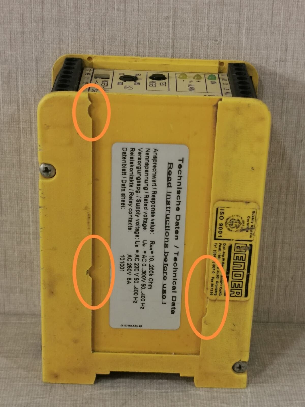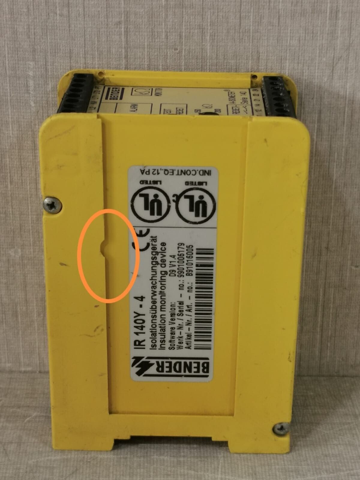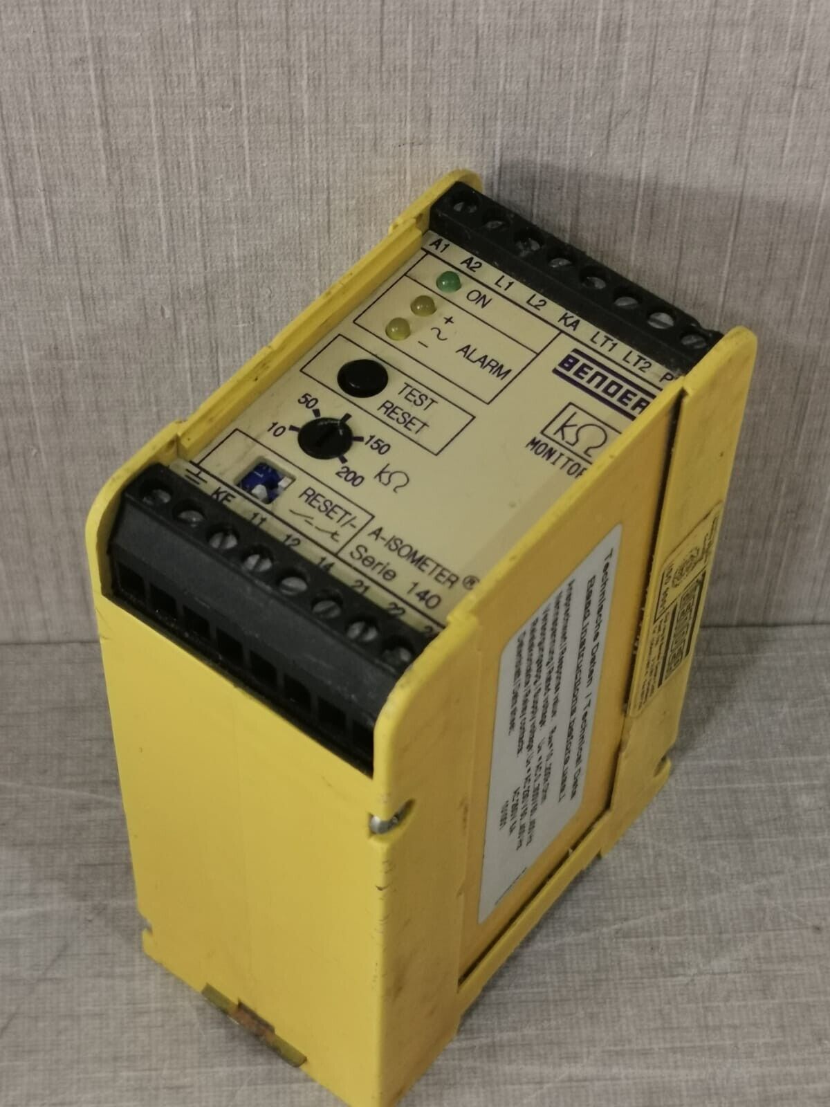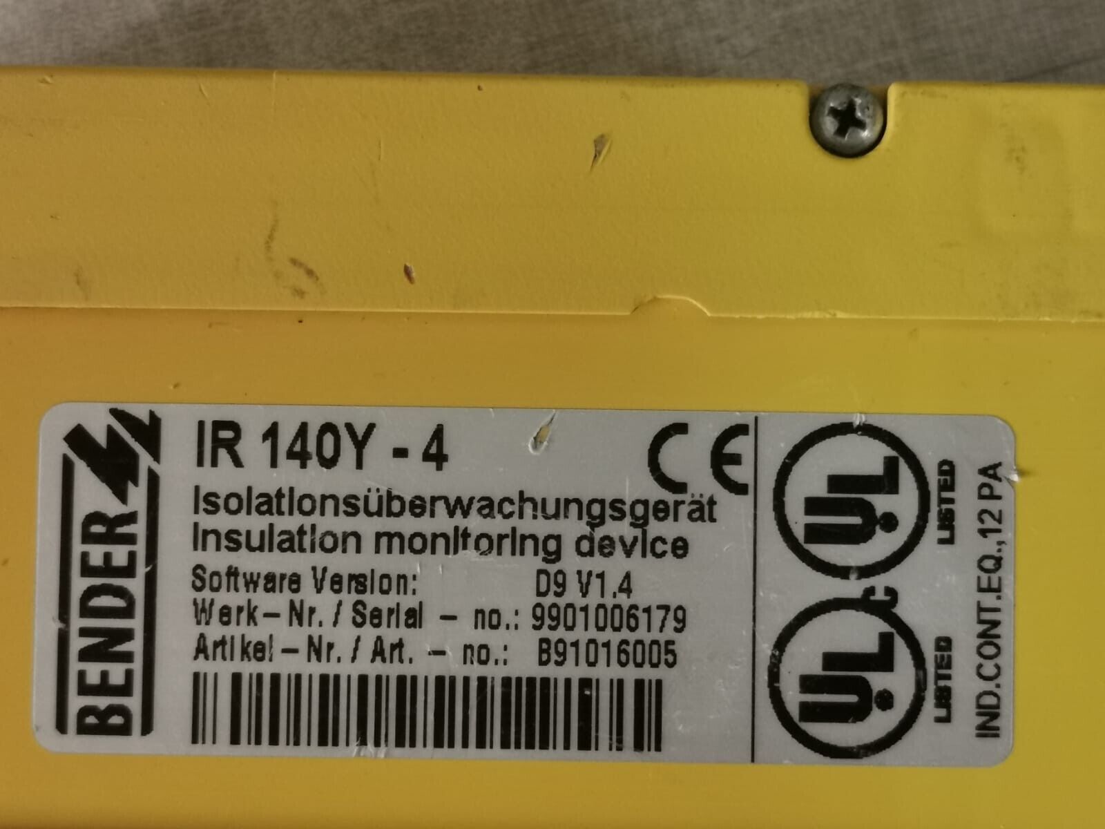 USED BENDER IR140Y-4 /B91016005 D9 V1.4 INSULATION MONITOR DEVICE A-ISOMETER IR 140