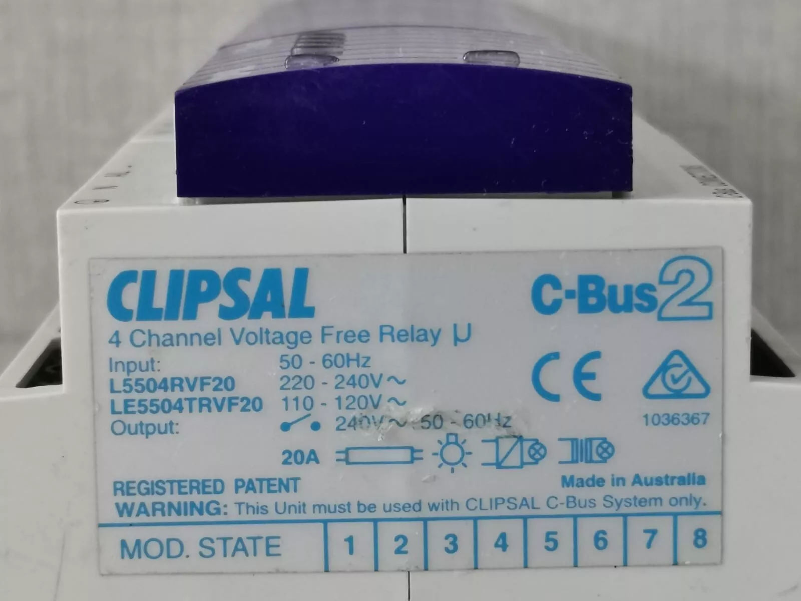 USED CLIPSAL C-BUS2 L5504RVF20/LE5504TRVF20 4-CHANNEL VOLTAGE FREE RELAY (MFG YEAR – 2004)