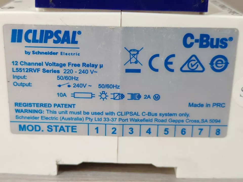 USED CLIPSAL L5512RVF 12 CH VOLTAGE FREE RELAY (MFG. 2020)-W/O C-BUS POWER SUPPLY