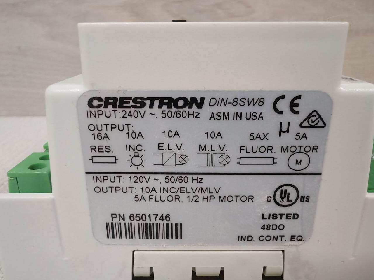 USED CRESTRON DIN-8SW8 HIGH-VOLTAGE SWITCHING 240V MAX 50/60Hz PN: 6501746