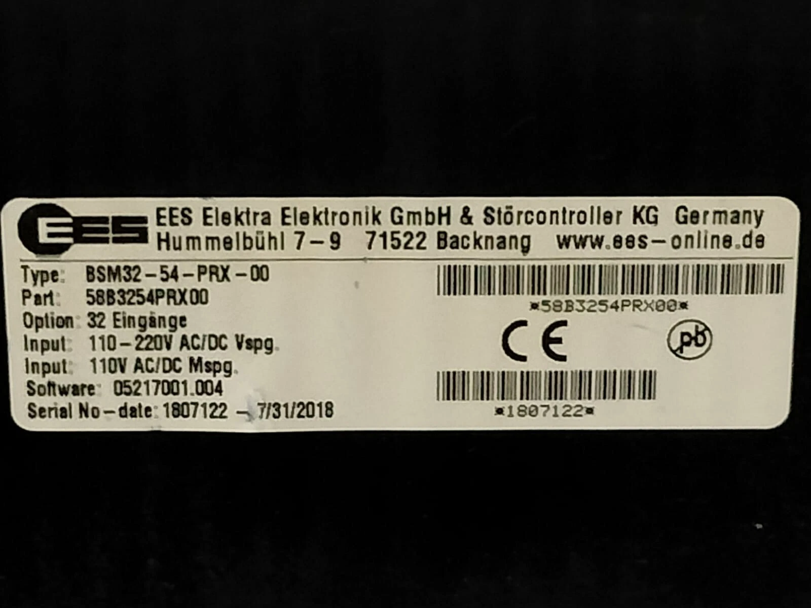 USED EES BSM32-54-PRX-00 Panel Control 58B3254PRX00 / 05217001.004