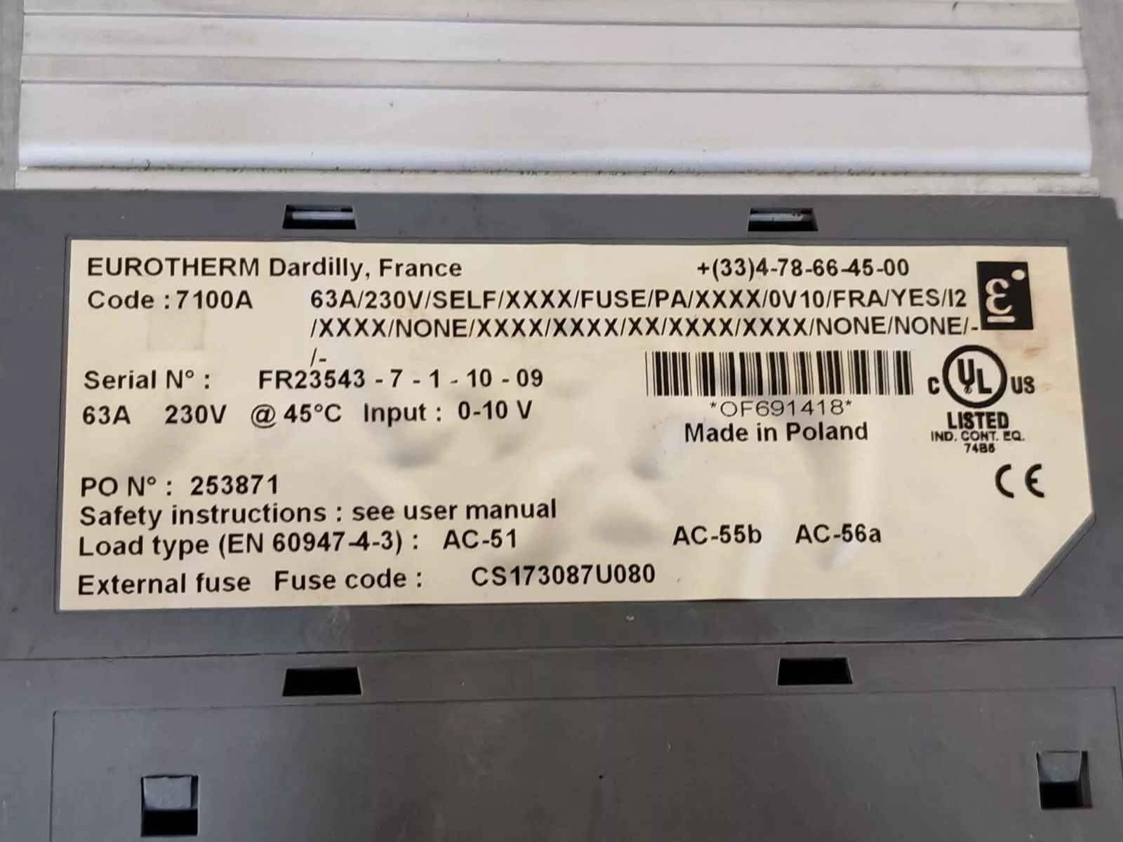 USED EUROTHERM 7100A ADVANCED CONTROLLER POWER THYRISTOR 63A/230V