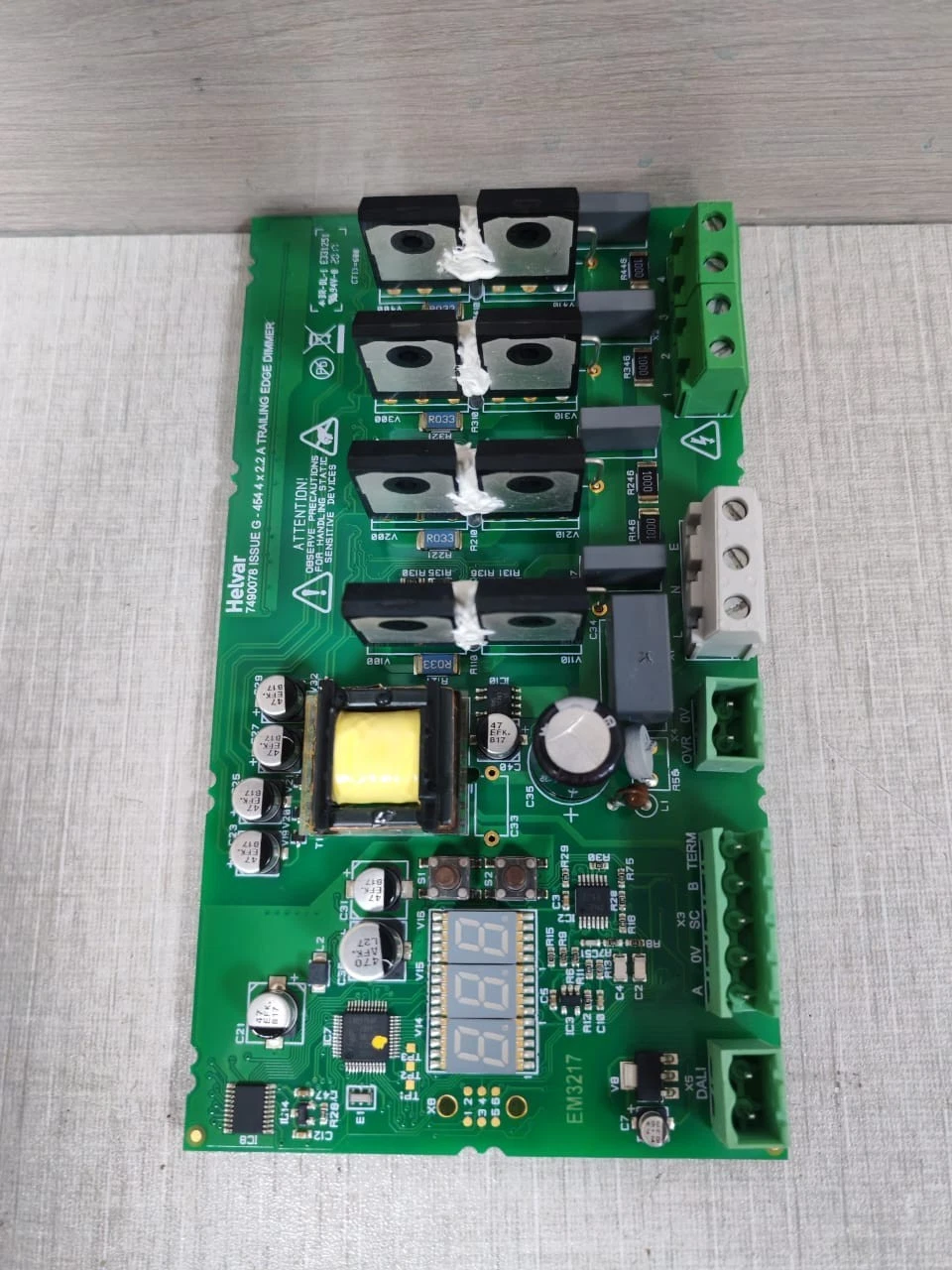 USED HELVAR 7490078 ISSUE G-454 4×2.2A TRAILING EDGE DIMMER BOARD FOR HELVAR 454