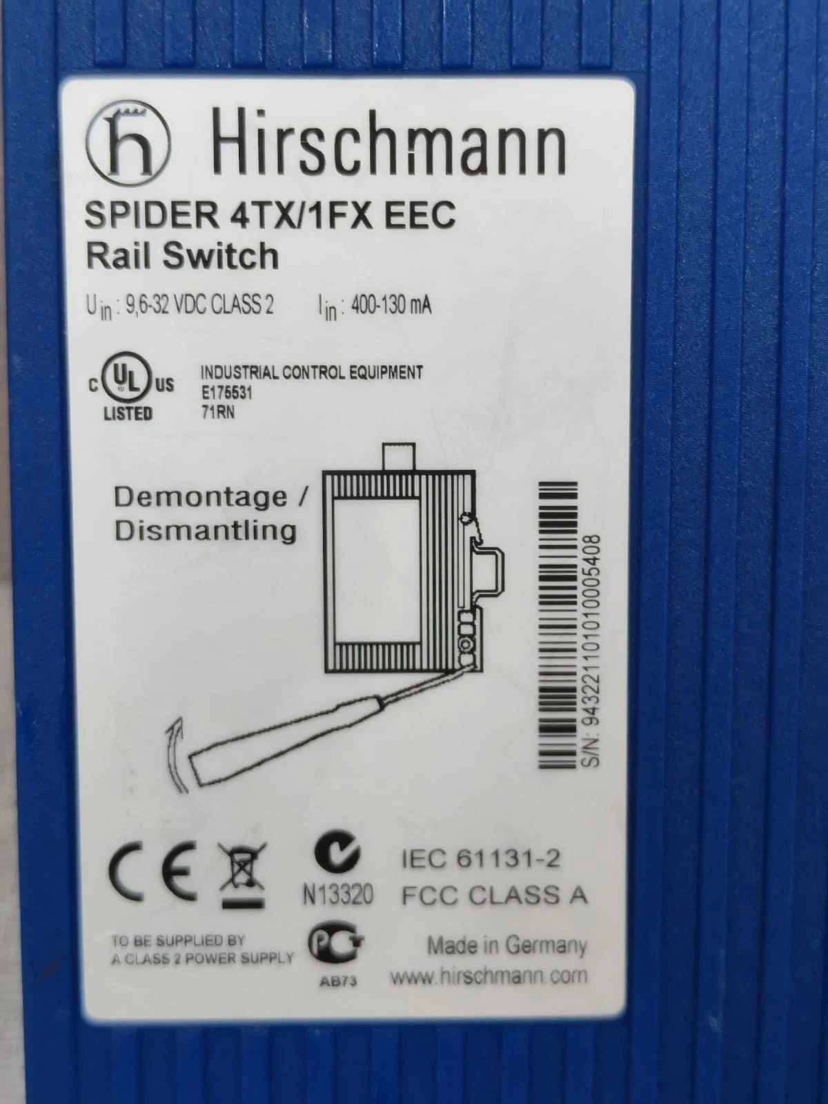 USED HIRSCHMANN SPIDER 4TX/1FX EEC RAIL SWITCH