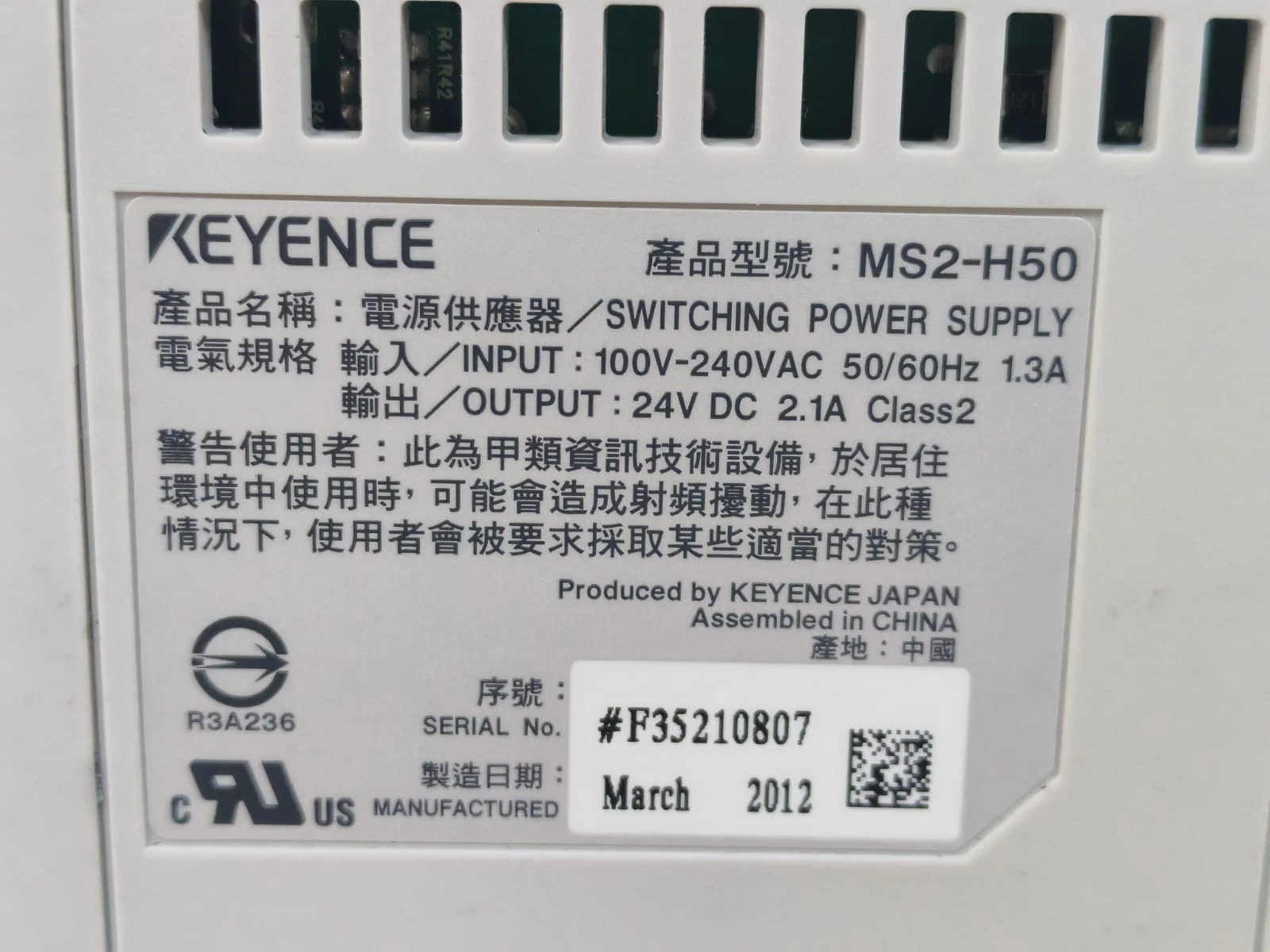 USED KEYENCE MS2-H50 2.1A SWITCHING POWER SUPPLY 100V-240VAC
