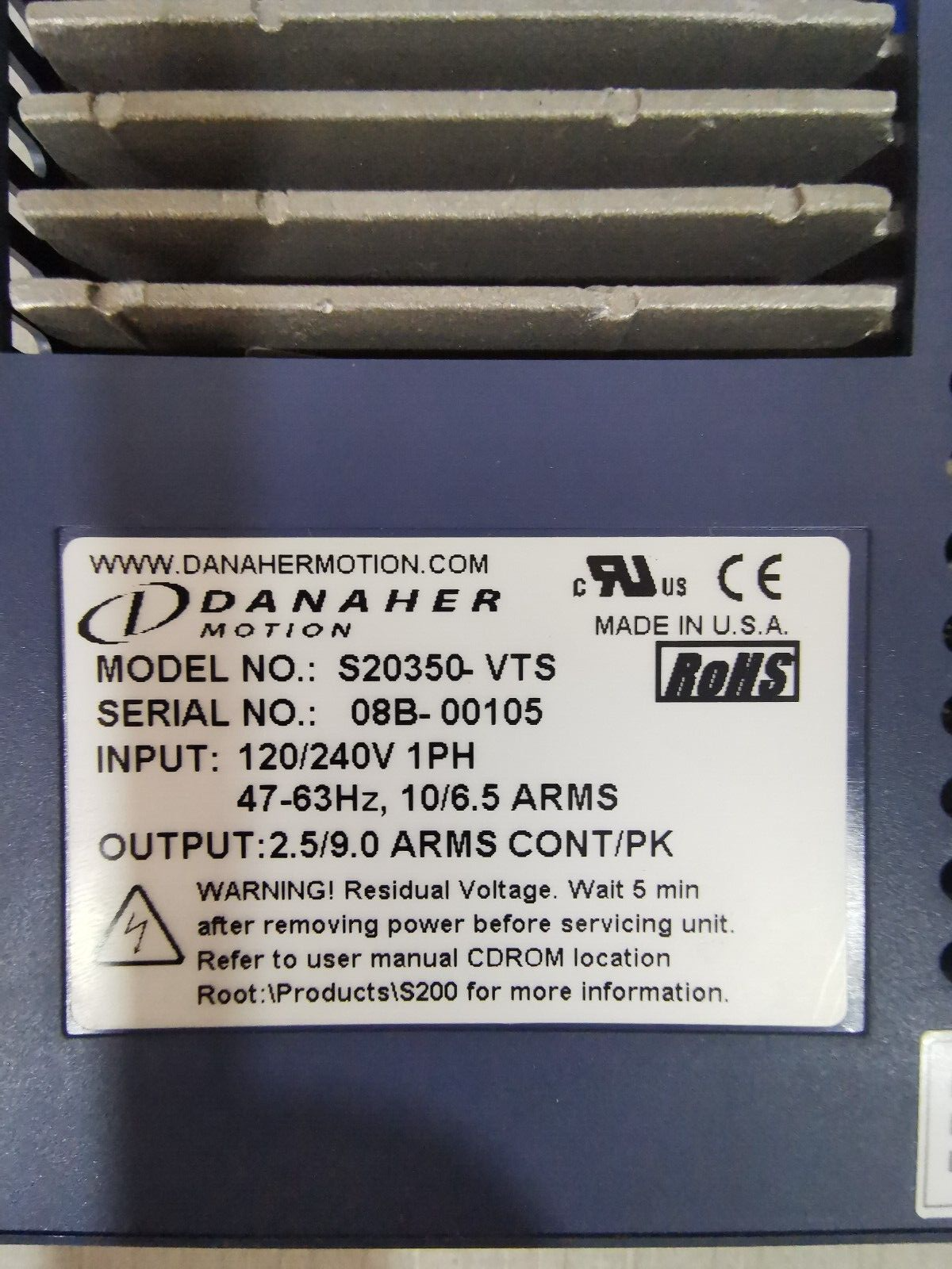 USED Kollmorgen S200 Series S20350-VTS SERVO DRIVE