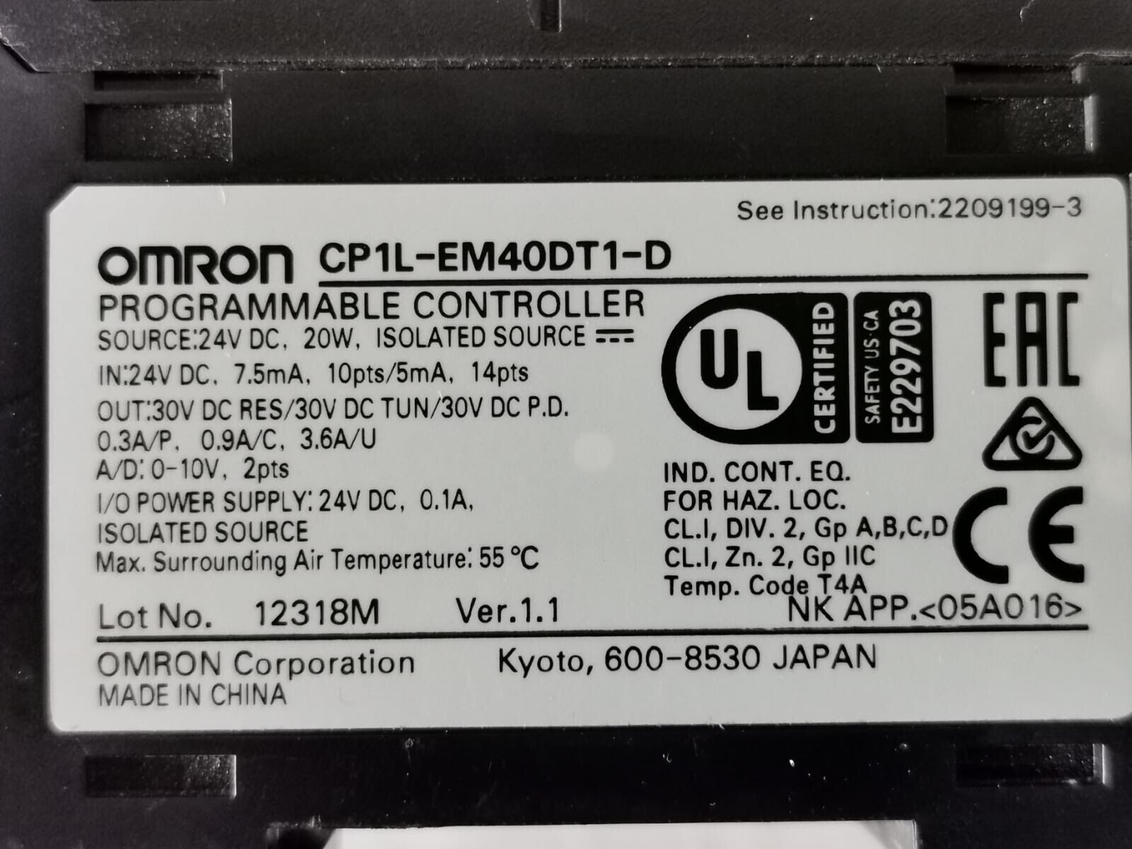 USED OMRON SYSMAC CP1L-EM40DT1-D Controller + CP1W-20EDT1 + CP1W-AD041 I/O Module