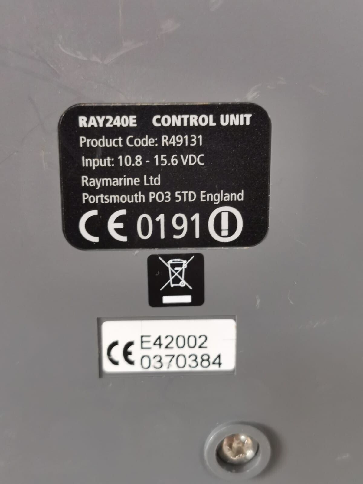 USED Raymarine RAY240E VHF Radio Transceiver R49131, 10.8-15.6VDC – Broken Cover Case