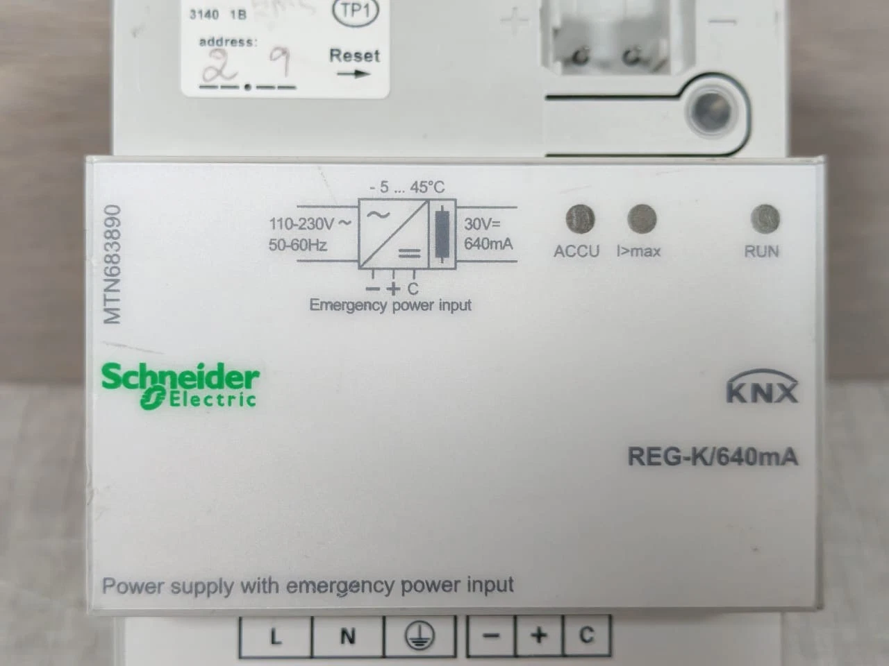 USED SCHNEIDER ELECTRIC MTN683890 REG-K/640mA KNX POWER SUPPLY -W/O ACCS.