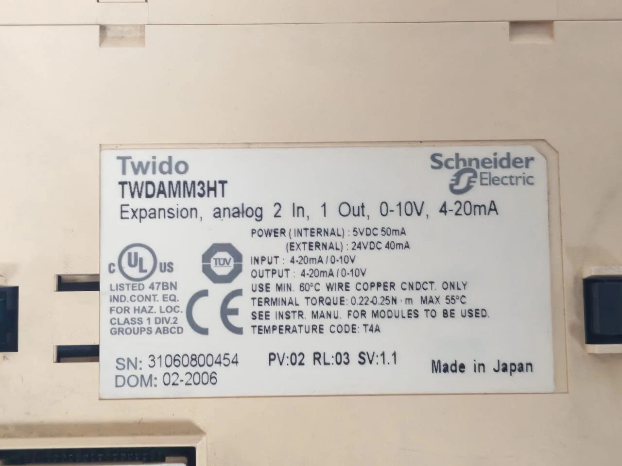USED Schneider Electric Twido TWDAMM3HT Expansion Module PV:02 RL: 03 SV:1.1