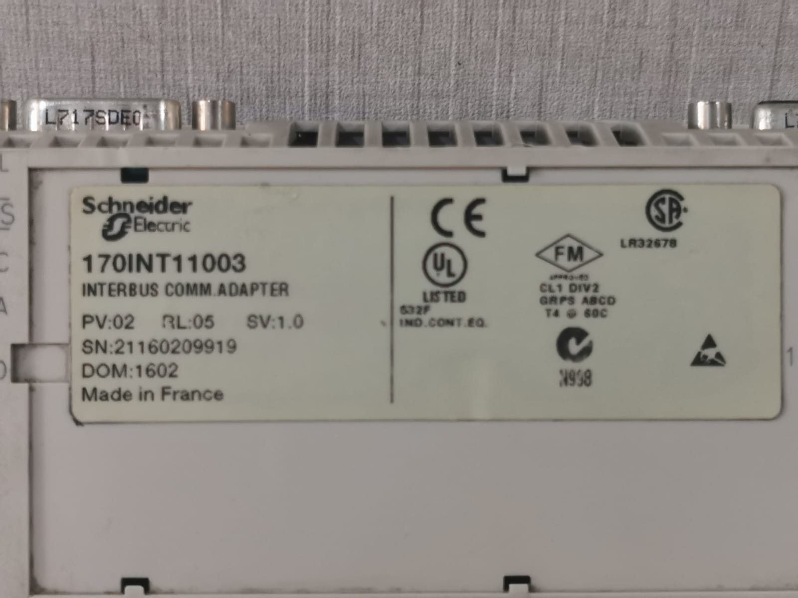 USED Schneider Electric 170INT11003 Interbus Communication Adapter 170ADI35000 PV.02 RL.05 SV.1.0