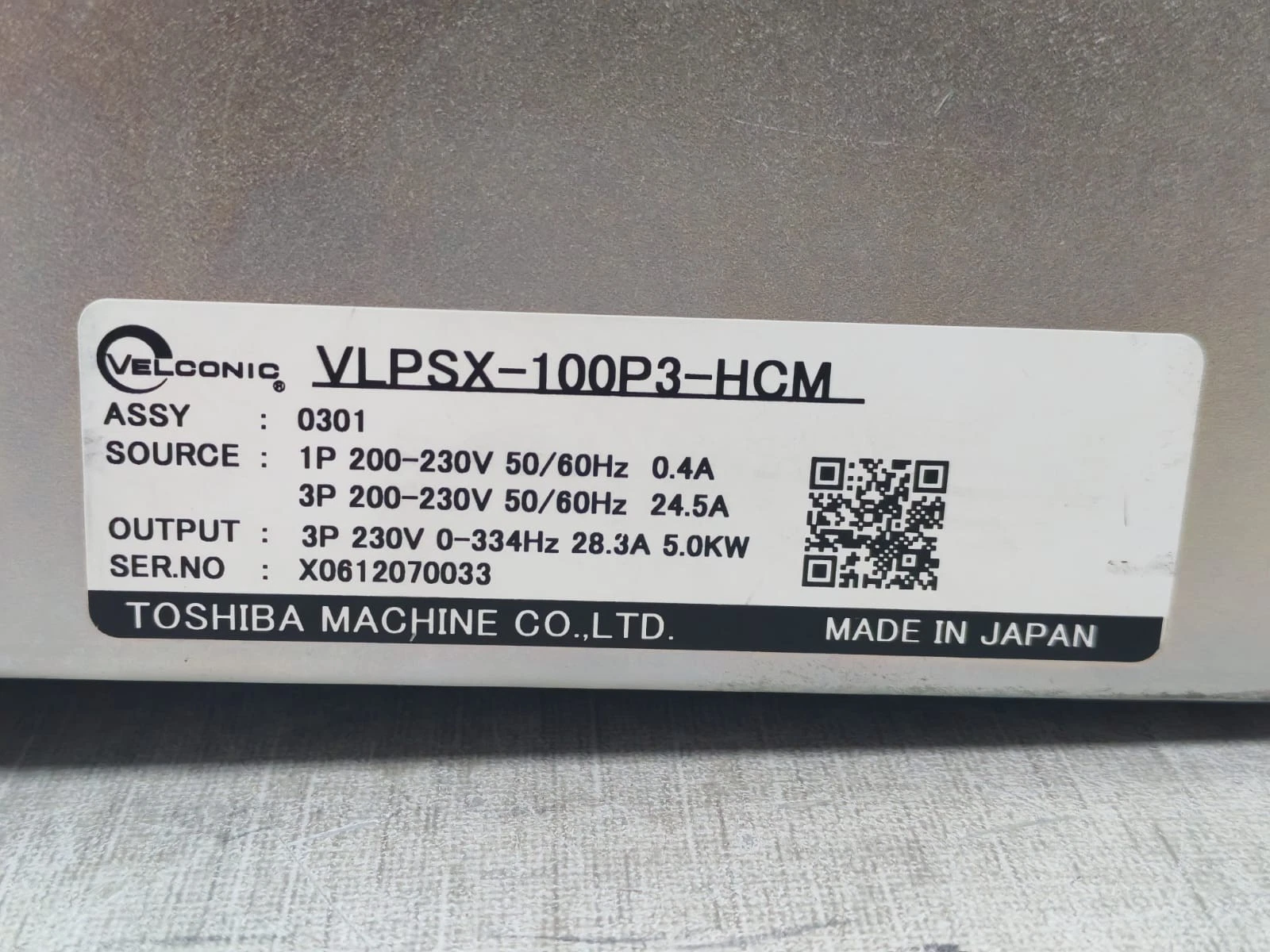 USED TOSHIBA / VELCONIC VLPSX-100P3-HCM ASSY: 0301 DRIVER – W/O ANY ACCS.