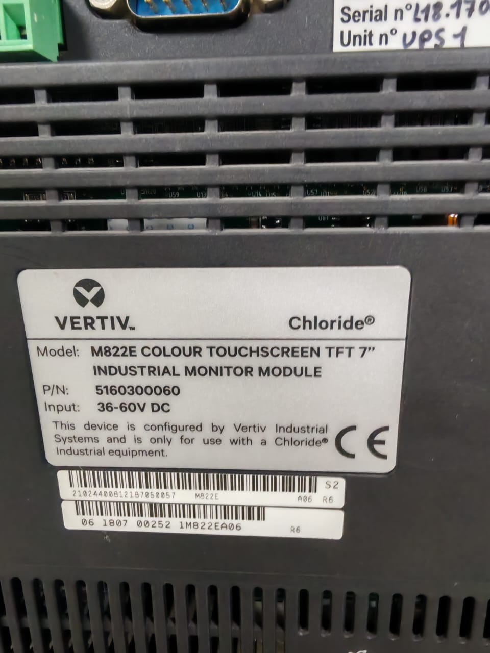 USED VERTIV M822E COLOUR TOUCHSCREEN TFT 7″ CP-60Z PN: 5160300060 – UNKNOWN PASSWORD