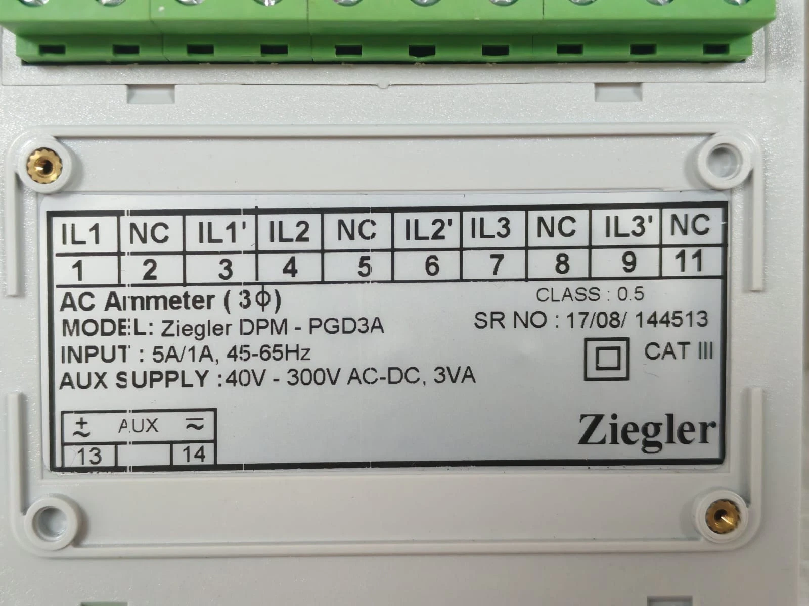 ZIEGLER DPM / DPM-PGD3A DIGITAL AC AMMETER 40-300V – NEW W/ OLD BOX