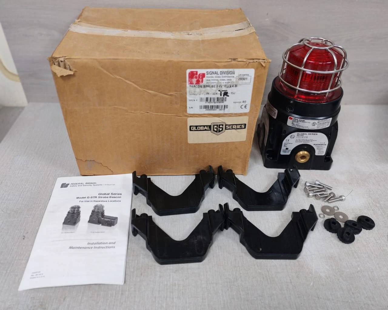 15J VISUAL STROBE 24VDC- NEW W/ FILTHY BOX “THE PRODUCT HAS NEW AND NEVER BEEN USED, EVEN THOUGH THE BOX WAS OPENED & FILTHY.WITH SCRATCHES ON THE ITEM AS SHOWN IN THE PICTURES.CHECK ALL THE PHOTOS FOR ITEM’S CONDITION FOR YOUR REFERENCES.”