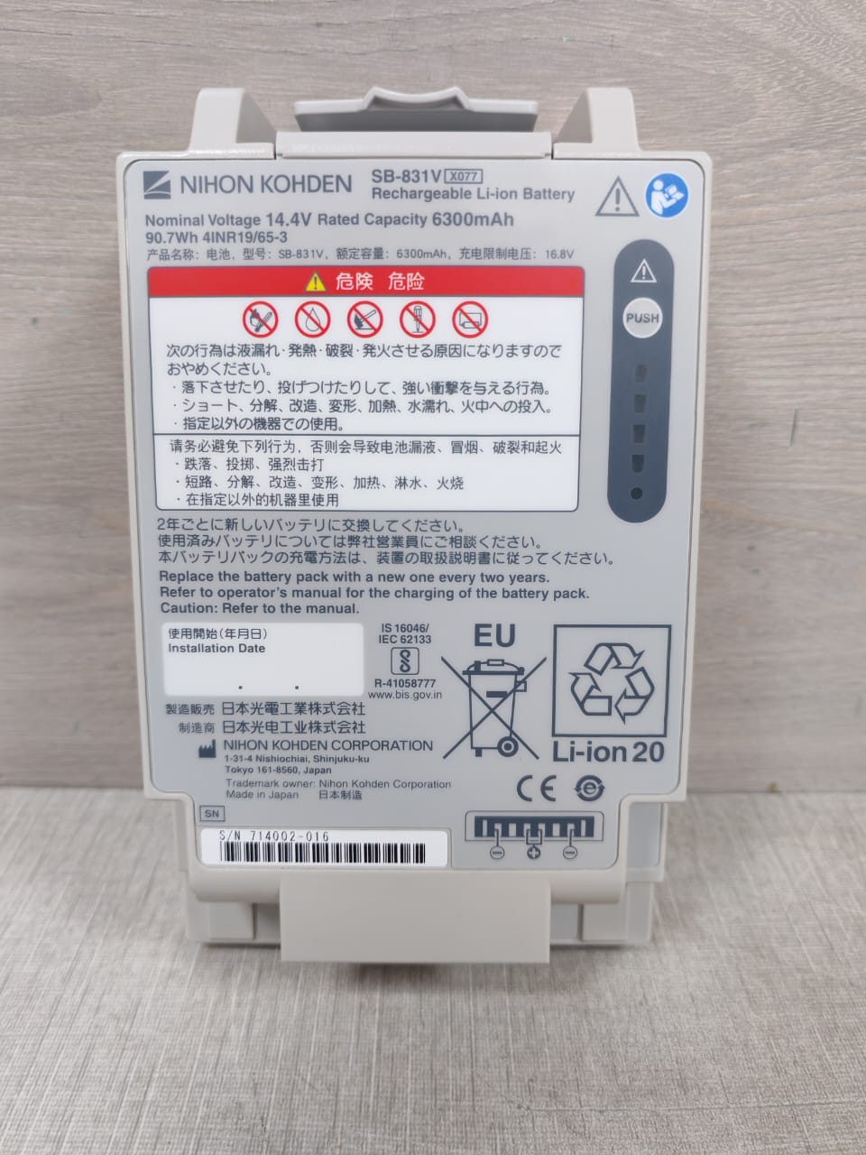 NIHON KOHDEN SB-831V X077 RECHARGEABLE LI-ION BATTERY 14.4V 6300mAh / NEW WITHOUT BOX
